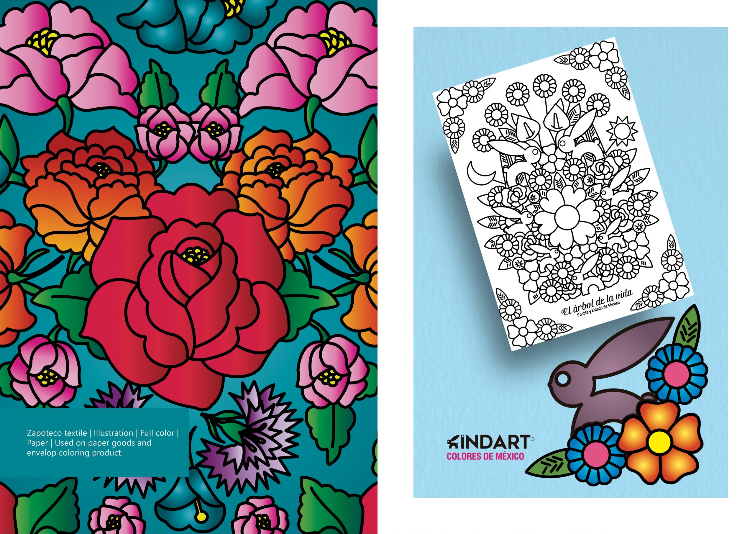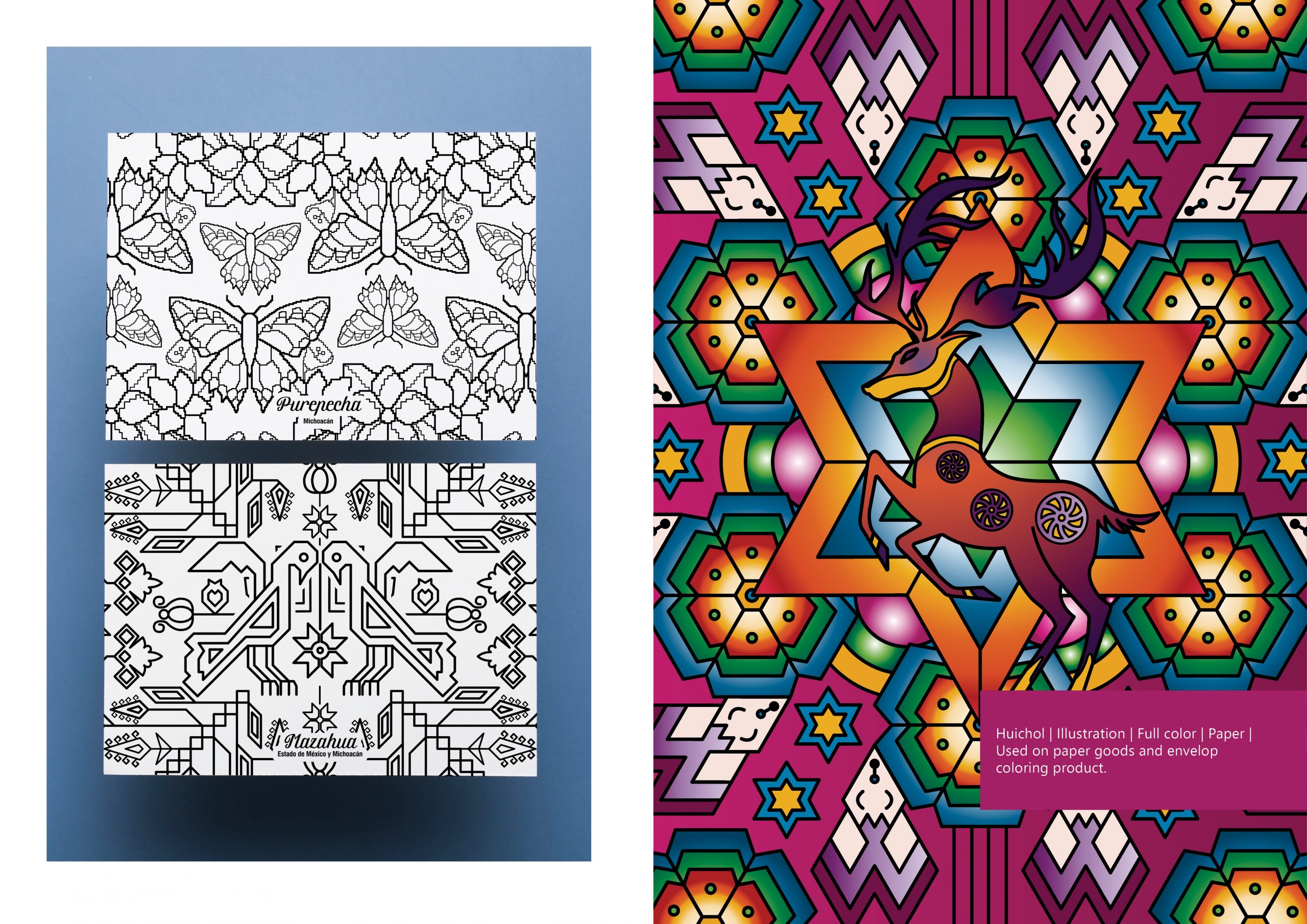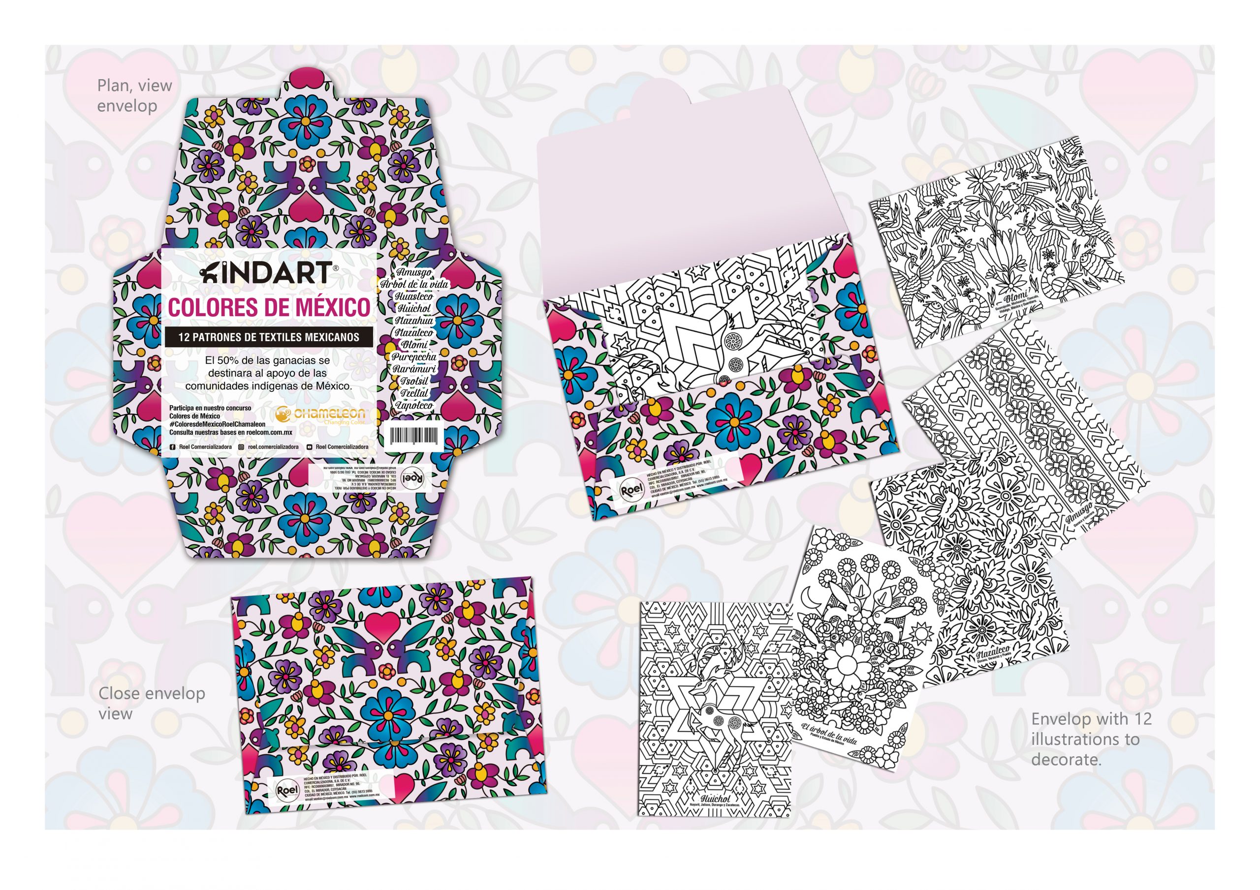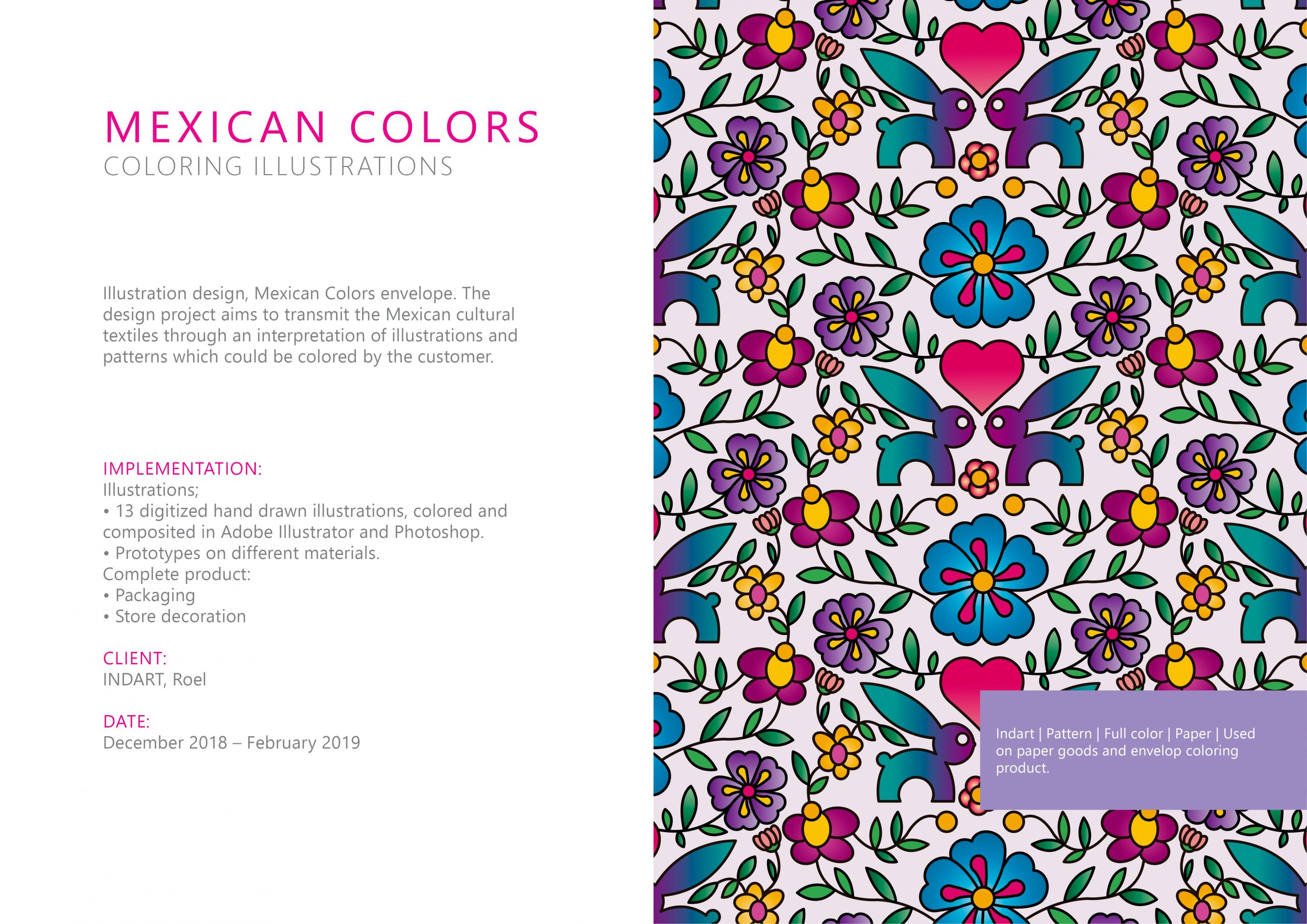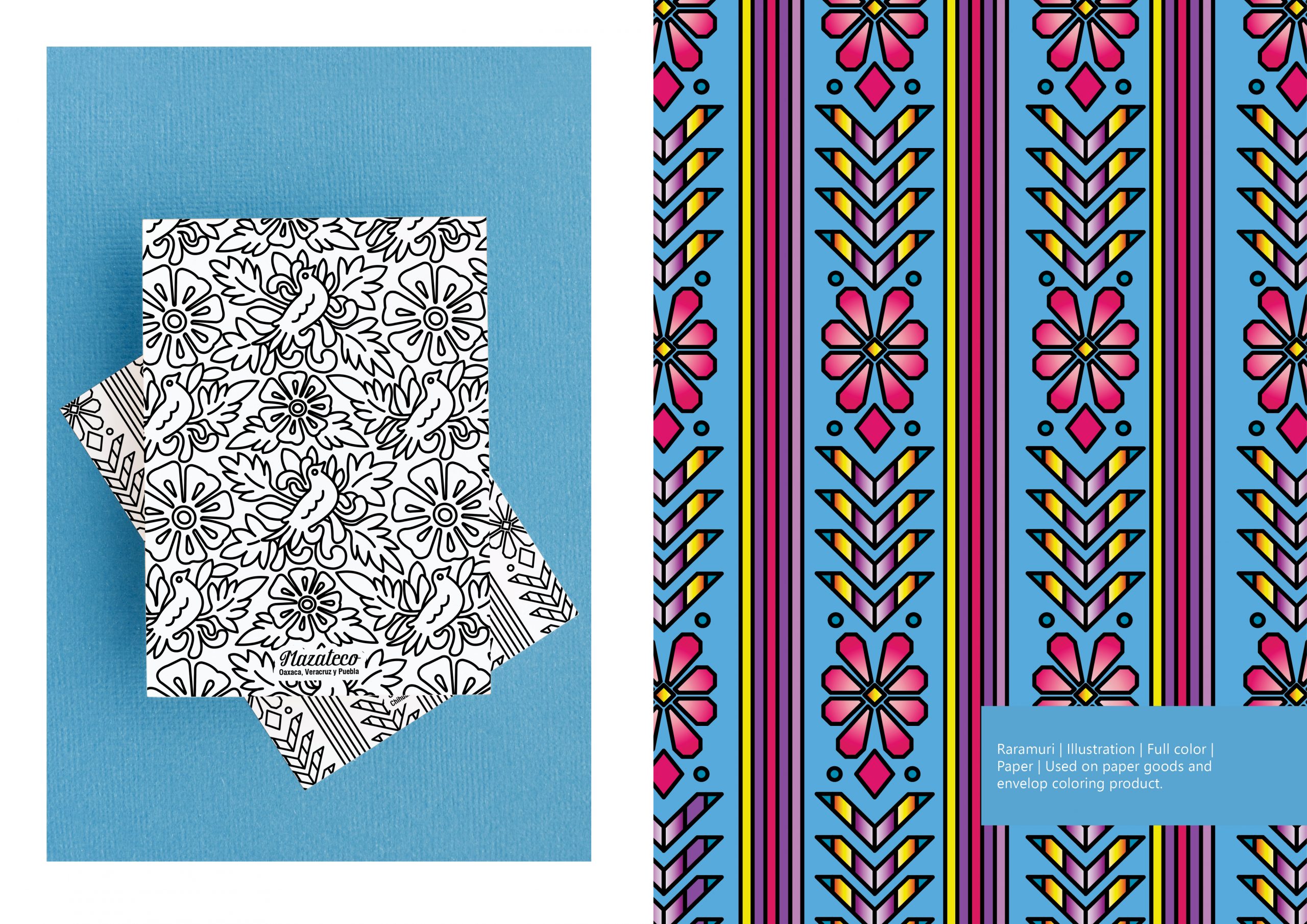 Illustration design, Mexican Colors envelope. The design project aims to transmit the Mexican cultural textiles through an interpretation of illustrations and patterns which could be colored by the customer.